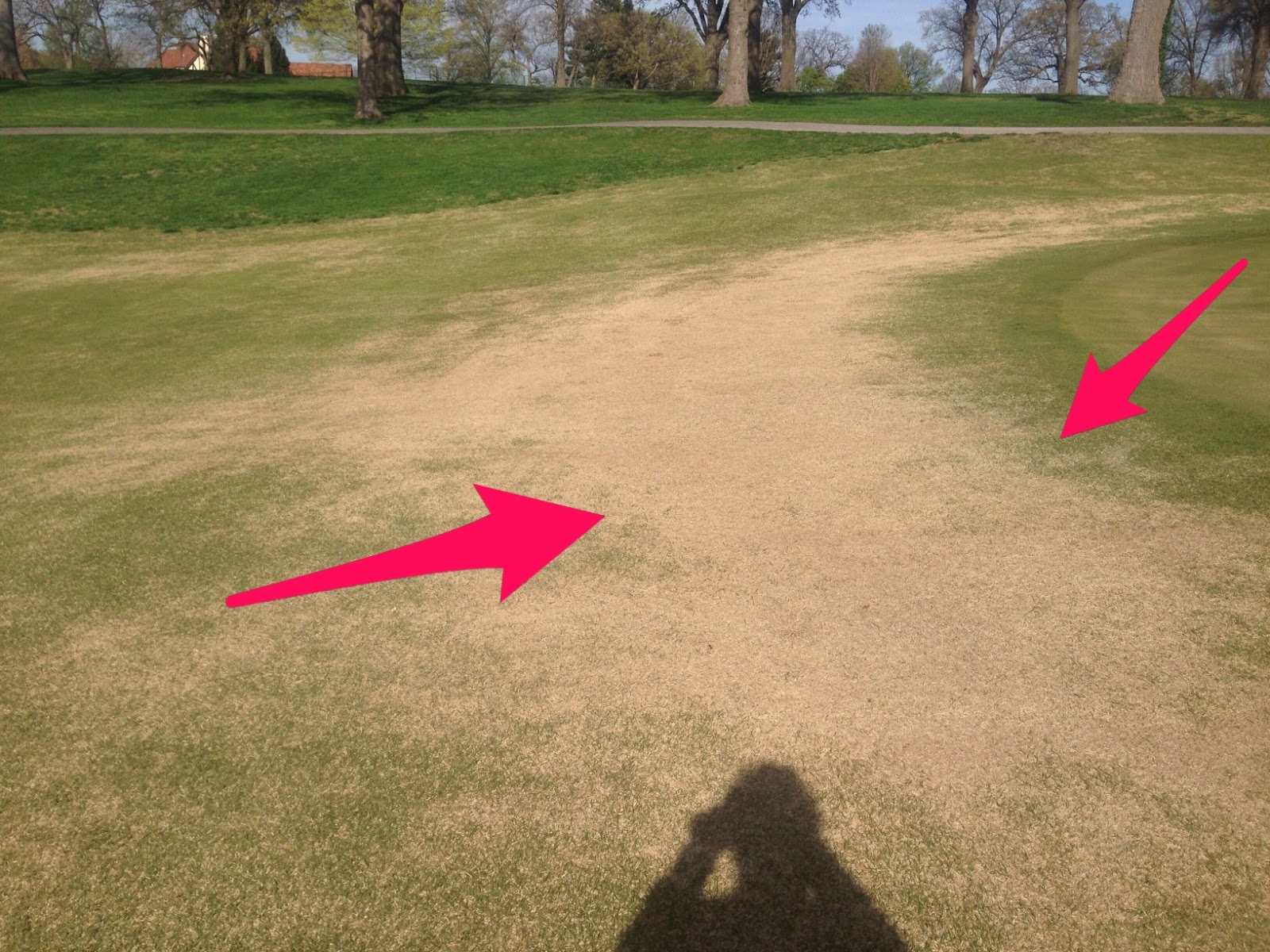 We've greened up nicely is many areas of our fairways but we do have some noticeable weakness in heavier trafficked areas such as approaches, shaded areas, north facing areas etc. There are a number of things that could be attributed to causing these issues. We talk mostly about the good and the work that takes place, every once in a while I have to talk about some bad.